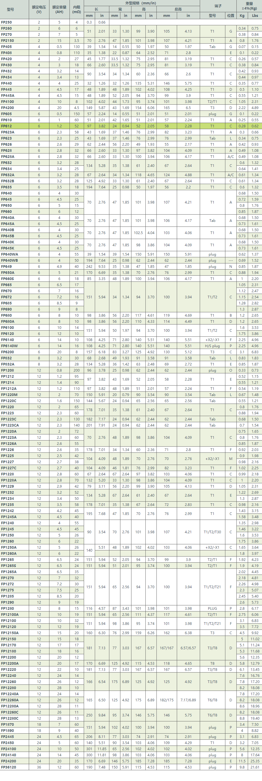標(biāo)準(zhǔn)電池系列技術(shù)規(guī)格 ( FP, LFP, CFP型號)